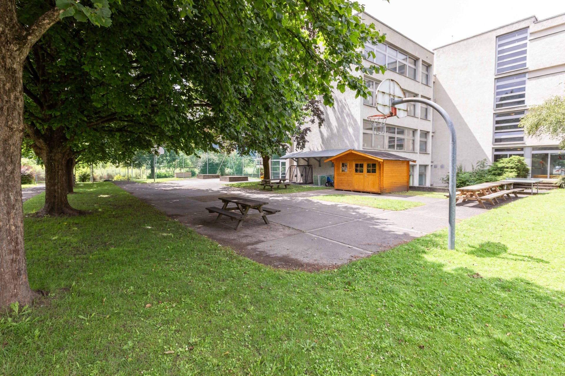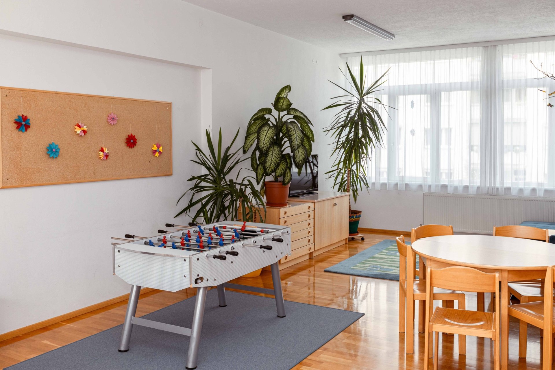 | Räumlichkeiten | • zweistöckig • Bewegungsraum, 3 Freizeiträume, 2 Lernbereiche, 1 Atelier • Küche • Zwei große Vorräume mit Elternecke • Ruheraum • Garten |